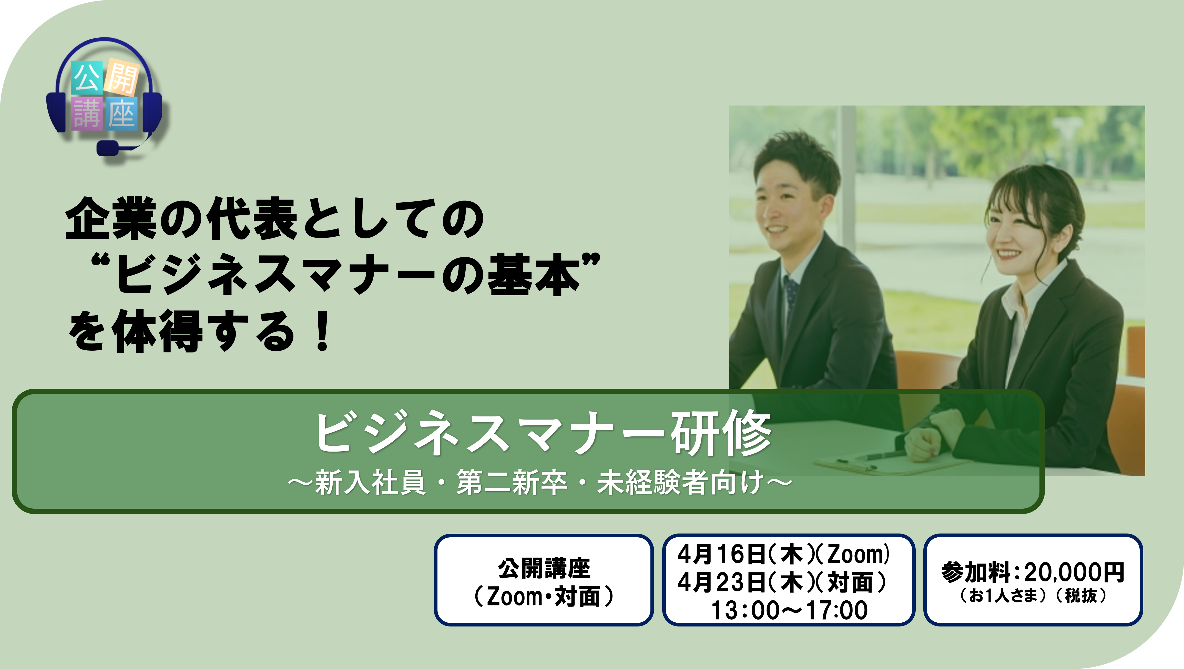 【2026年4月16日/4月23日 開催】ビジネスマナー研修