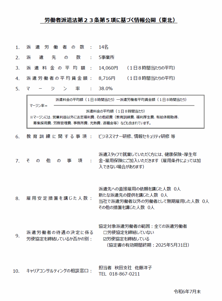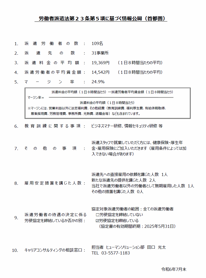 労働者派遣法第23条第5項に基づく情報